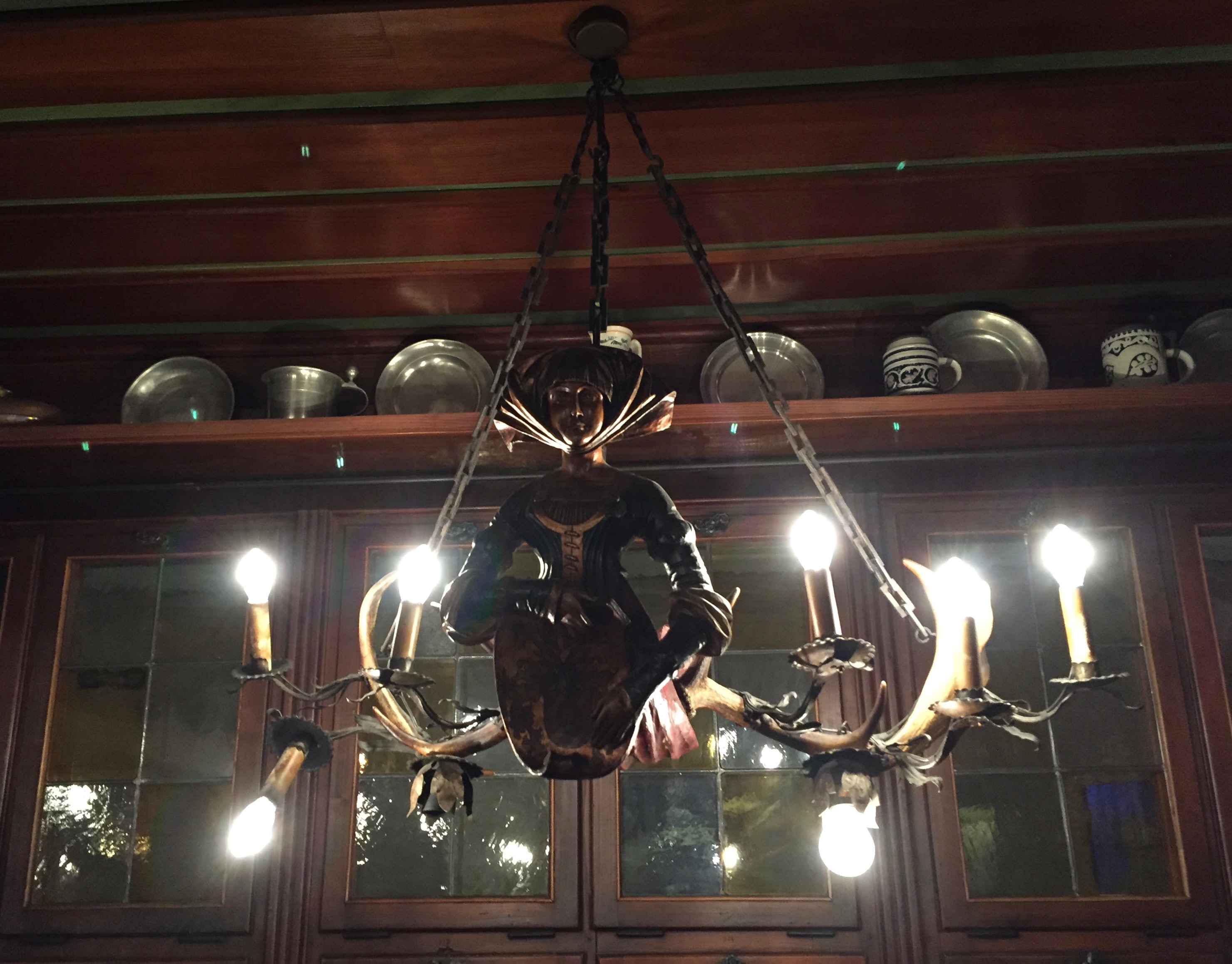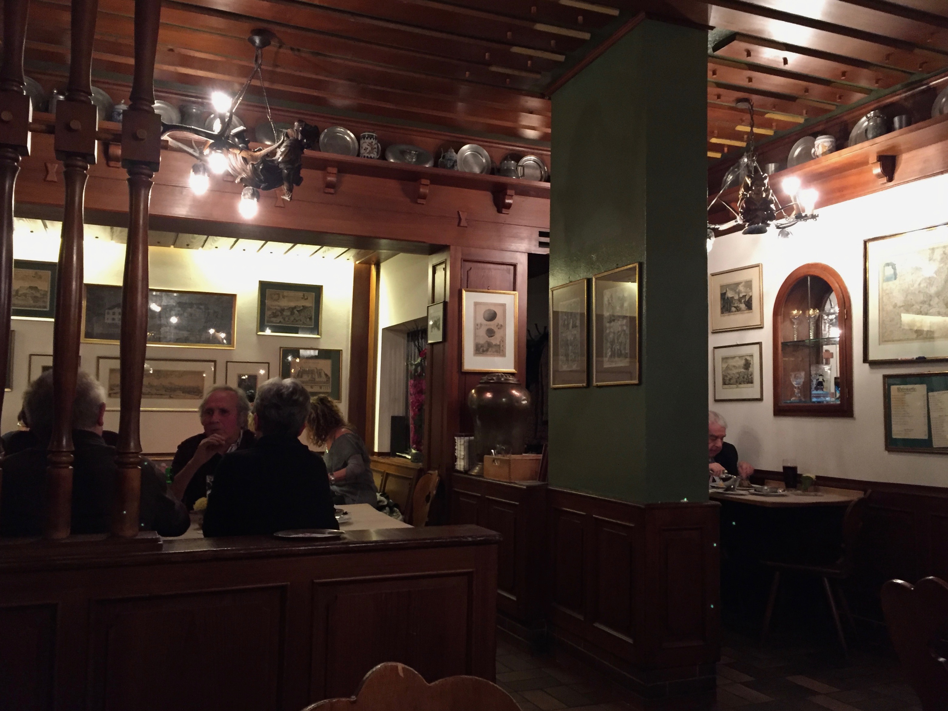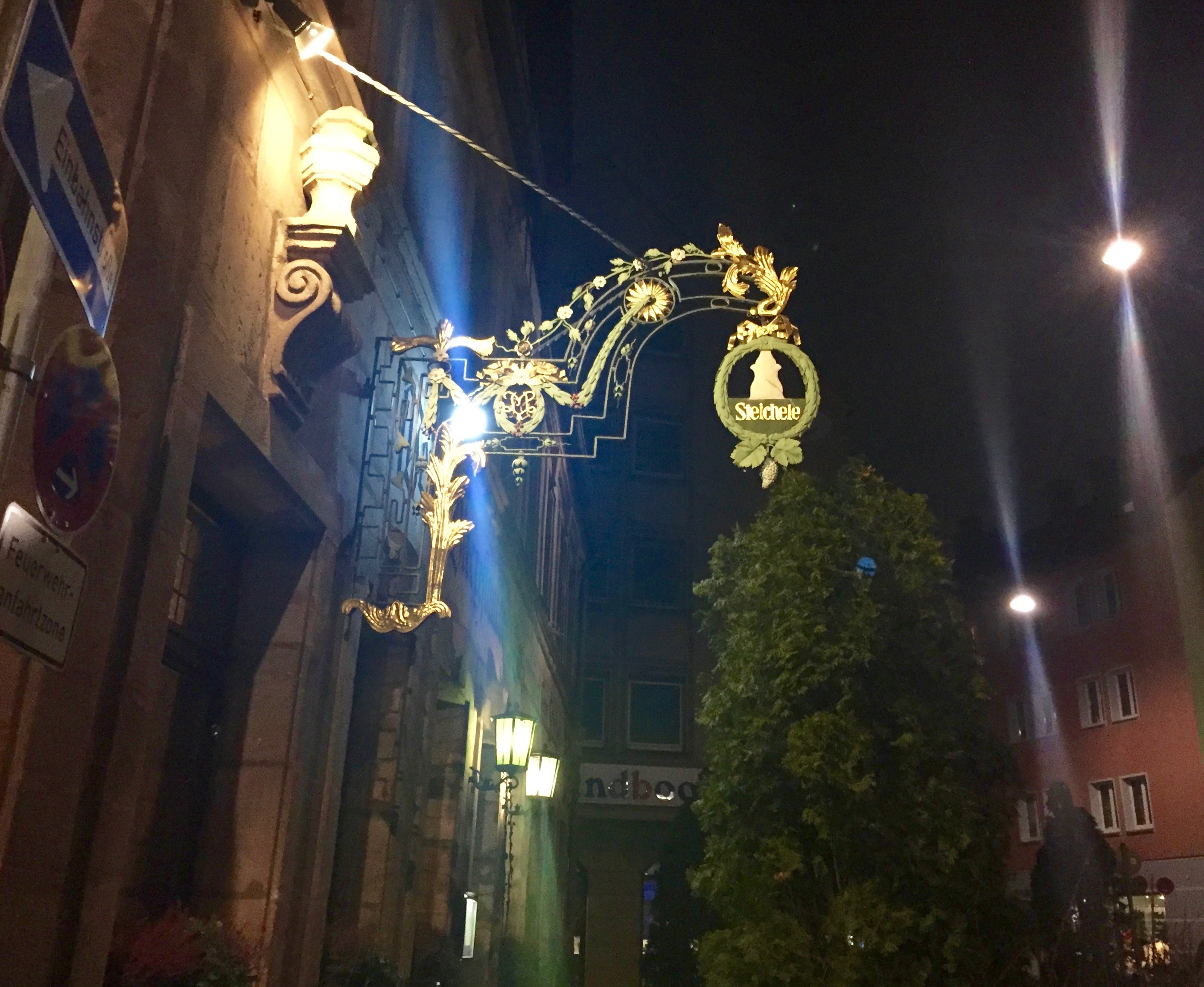Das Leben hatte sich überlegt, wir sollten mal nach Nürnberg. Also reisten wir und landeten abends im „Steichele“. Das „Steichele“ gibt es seit 1897, und ein paar der Gäste waren am Eröffnungsabend schon da. Die Besitzer hingegen sind inzwischen in der 5. Generation. Die Räume sehen aus, wie man sich das so vorstellt, abgesehen von der Beleuchtung, die ist ein bisschen hell, aber daran ist wahrscheinlich irgendein irischer EU-Kommissar schuld. Die Lampen selbst – sind das Hüftgelenke von toten Hirschen? Die Nachfrage macht’s nicht weniger seltsam: Es handelt sich um Original Schnitzereien, über hundert Jahre alt, und sie heißen: Lüsterweibchen. Aha. Nun denn, jetzt geht’s an die Karte.