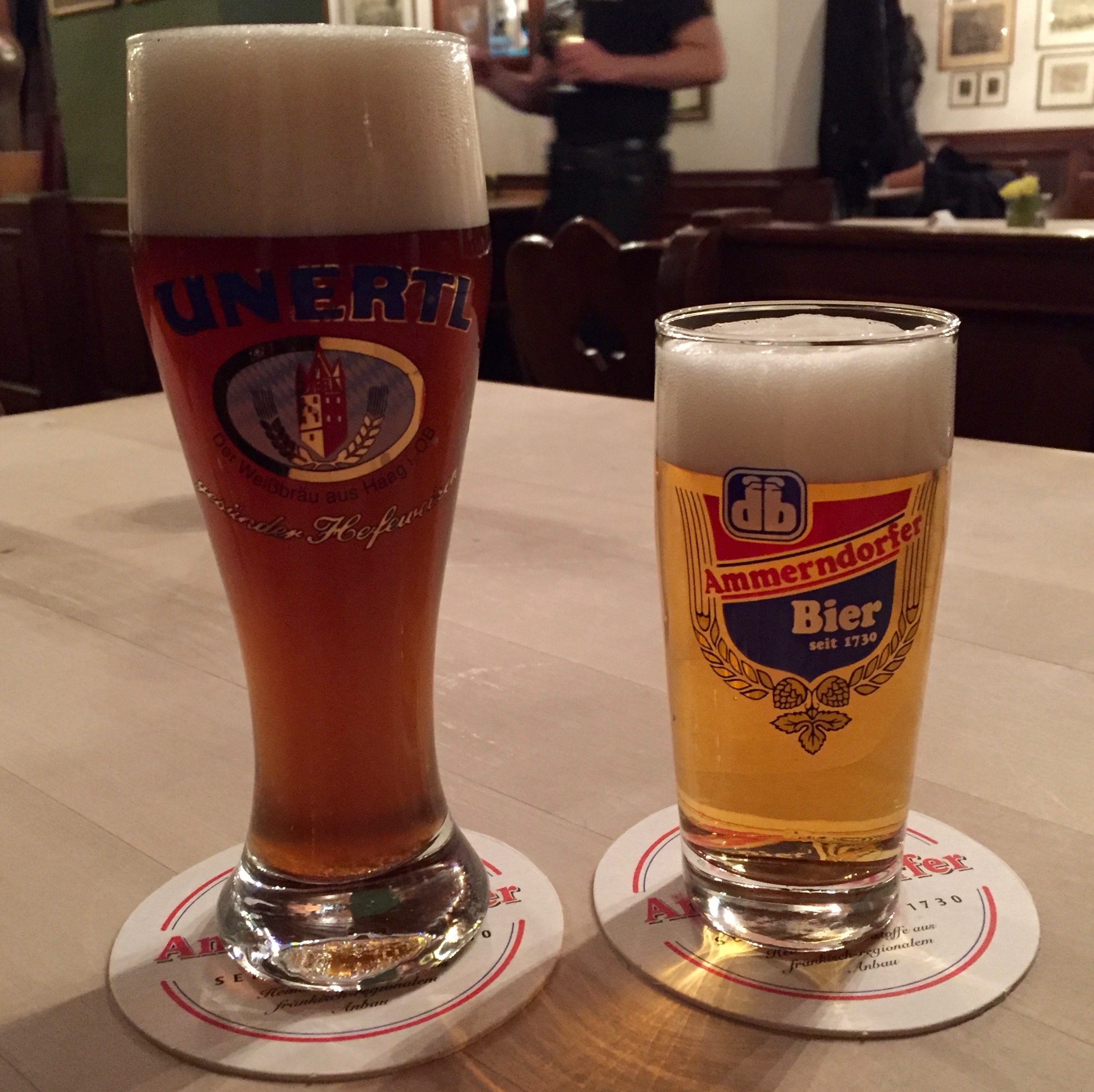 Irgendwie erklärt dieses Essen ganz viel. Man sitzt „danach“ so rum, kloßschwer und denkt sich: Ach, jetzt bloß keine Veränderung. Alles soll so bleiben wie es ist. Vor allem ich hier – bloß so bleiben. Und ehrlich gesagt: Jetzt wäre ein Bier gut. Die beste Begleiterin bestellt ein Weizenbier, aber das verknüpfe ich mit unguten Erinnerungen, ich weiß noch nicht einmal mit welchen. Aber ich trinke zum ersten Mal ein Helles, genauer gesagt ein Ammerndorfer Hell, das so mild ist, man könnte einfach immer weiter trinken. Das macht man normalerweise wohl auch, wenn man ein Franke ist. Essen und Bier und Lüsterweibchen, das alles zusammen ergibt folgerichtig so etwas die Gründung der CSU. Zack, Rätsel gelöst.